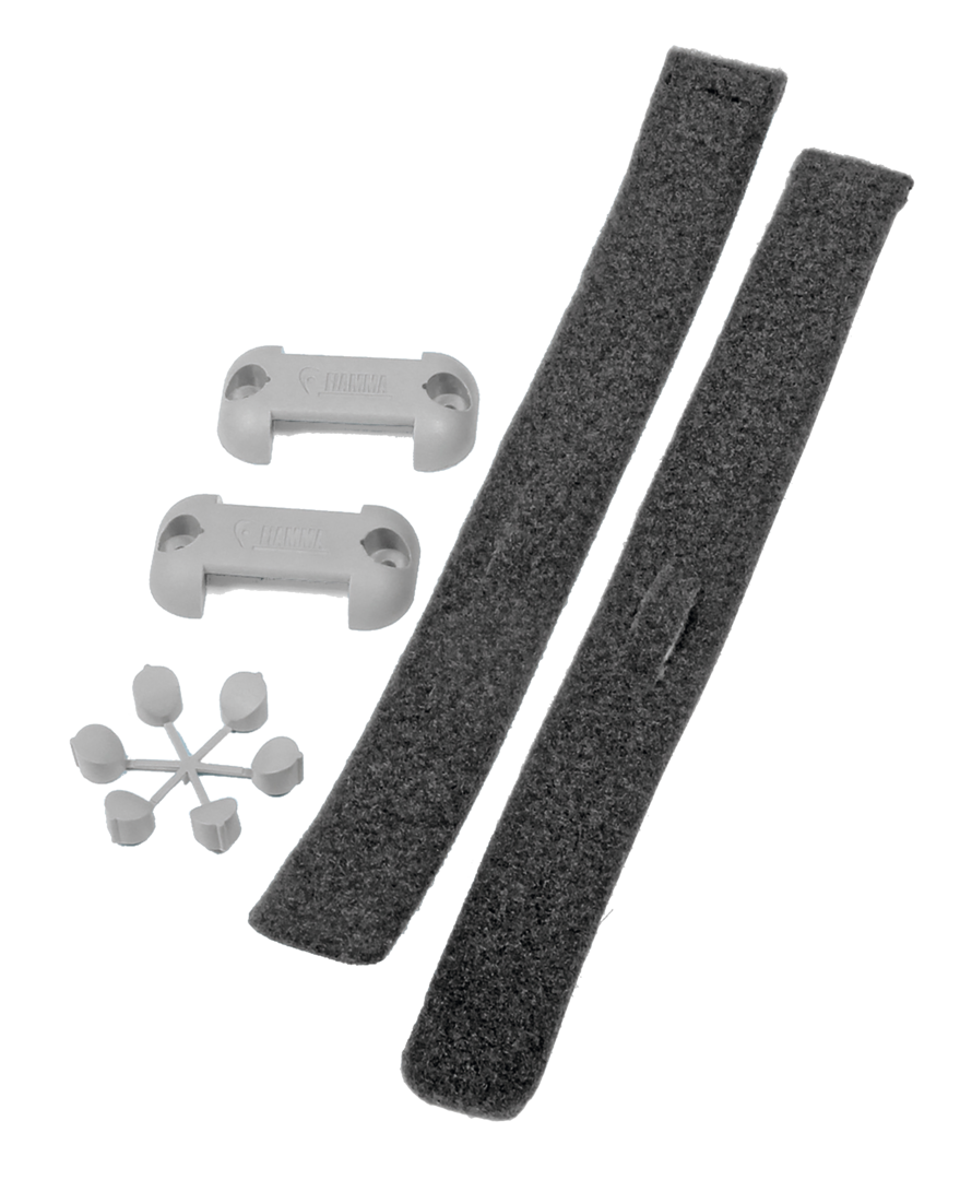 Einbauverbindungen aus Aluminium, serienmäßig mit sechs selbstschneidenden Schrauben, garantieren eine hohe Stabilität. Leichtes Auf- und Abbauen, die Einbauverbindung (C), steht nur gering vom Boden ab, separat ist der Schließungsdeckel (E) erhältlich. Verstärkter Dreifuß (B) aus UV-abweisendem Kunststoff.