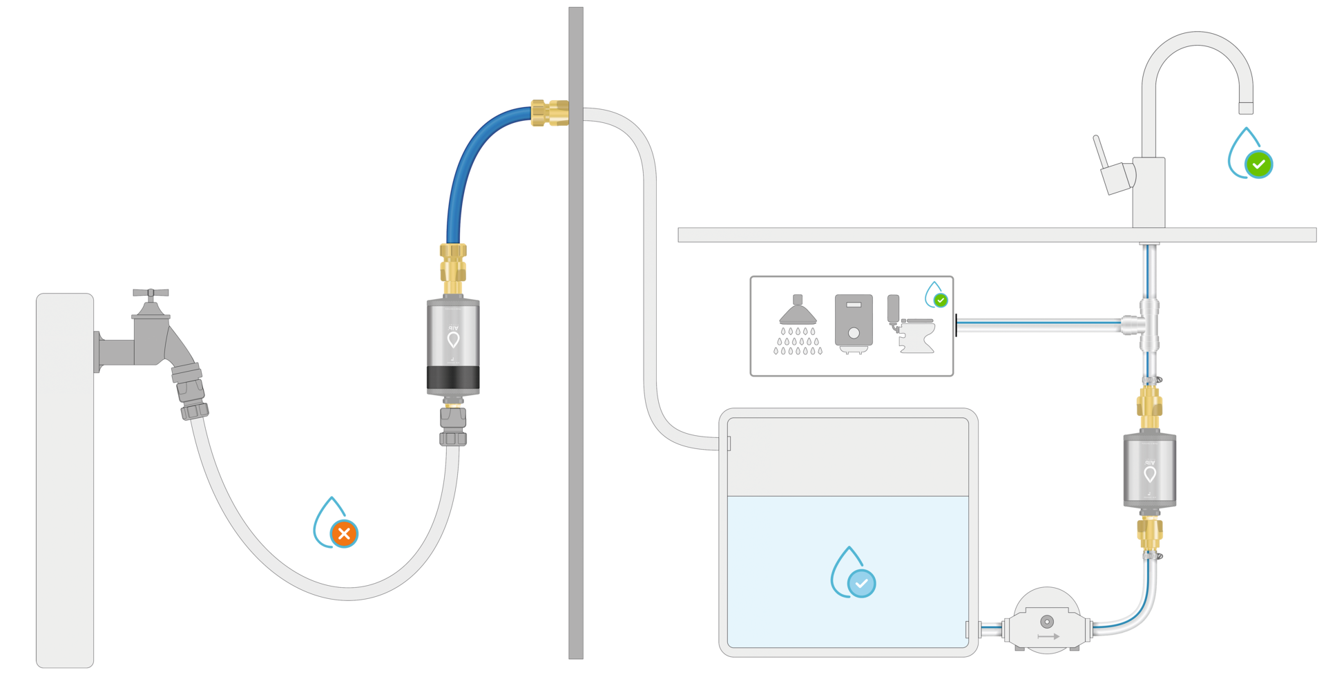 Bei kleinen Wassertanks oder gar Kanistern ist die Betankung von außen mit den MOBIL-Sets eine gute Lösung. Wasser wird schnell verbraucht und die Gefahr einer Verkeimung kann