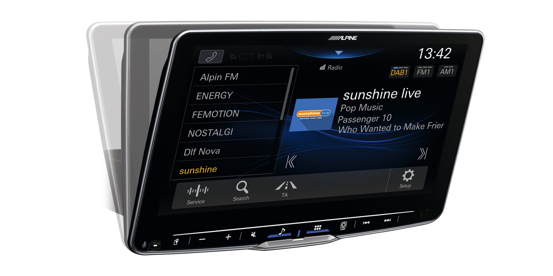 Diese Alpine Digital-Media-Station eignet sich besonders für Vans, Kastenwagen, Wohnmobile oder andere Fahrzeuge mit einem großen Armaturenbrett – oder einfach für jeden Benutzer, der eine maximale Bildschirmgröße wünscht. Das super schlanke HD-Display scheint einfach über Ihrem Armaturenbrett zu schweben und kann für den besten Blickwinkel in der Neigung angepasst werden.