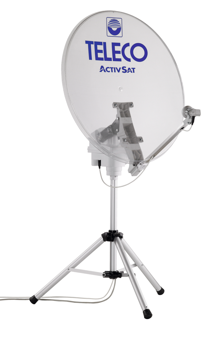 ActivSat. Tragbares automatisches Satellitensystem, Installation auf einem mobilen Stativ. Sie können Ihr Reisemobil oder Ihren Wohnwagen im Schatten parken und Ihre automatische Sat-Anlage ActivSat an jedem beliebigen Ort installieren.
