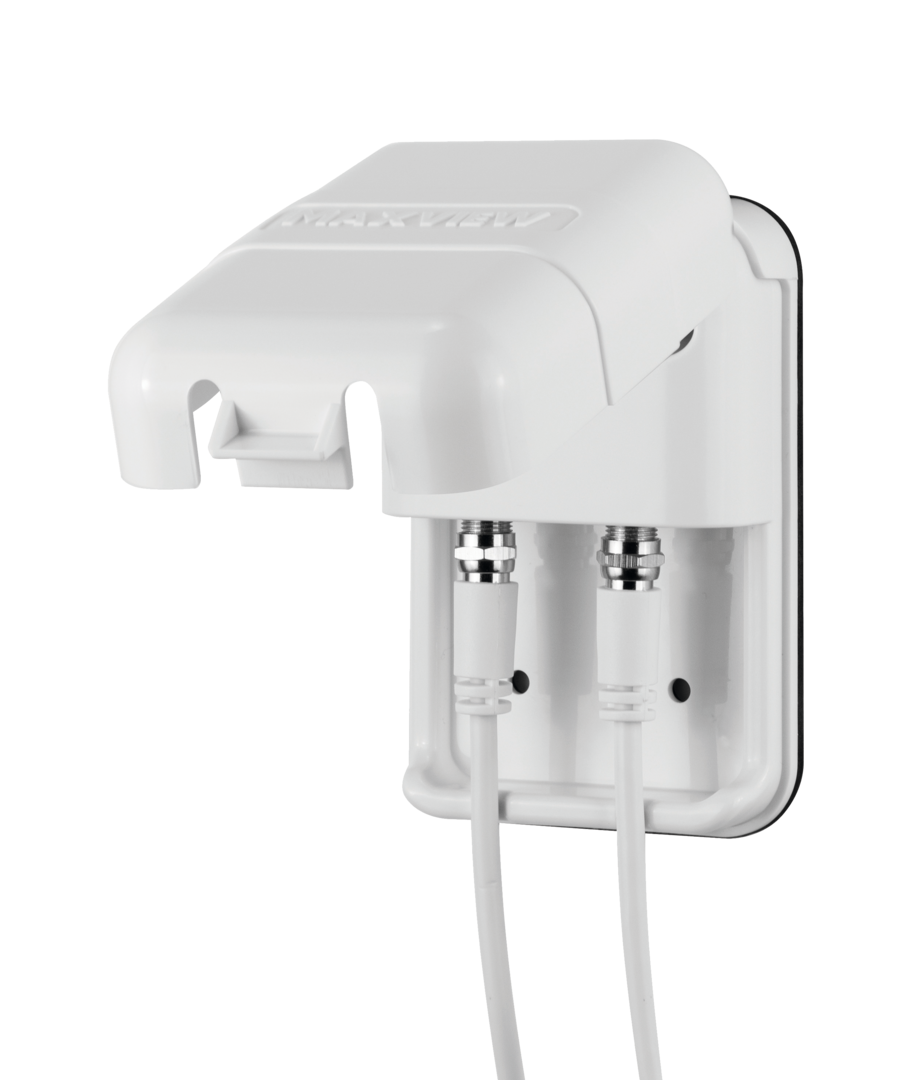 Twin-Außensteckdose für Sat-Antennen und terrestrische Antennen.