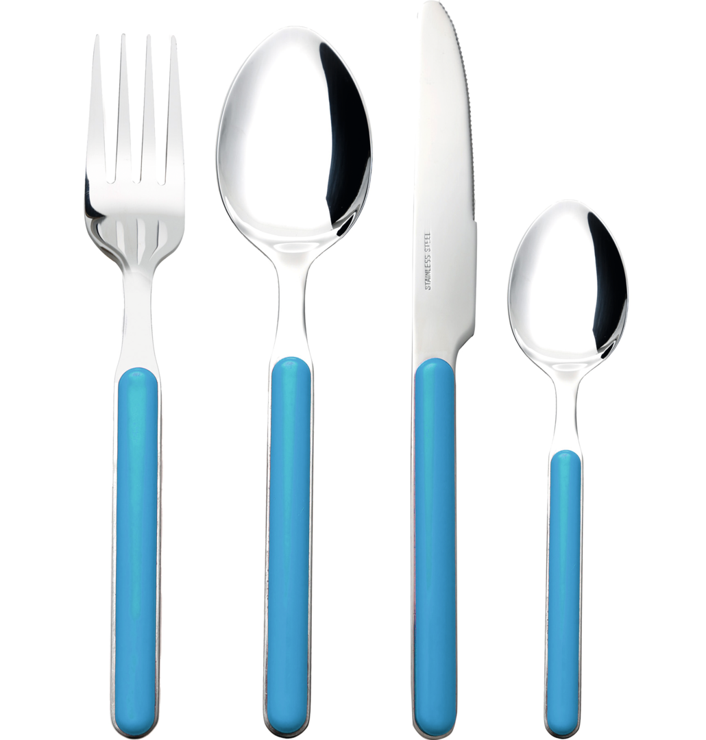 16-teiliges Besteckset mit solider, rostfreier Metallseele und Kunststoffgriffen.