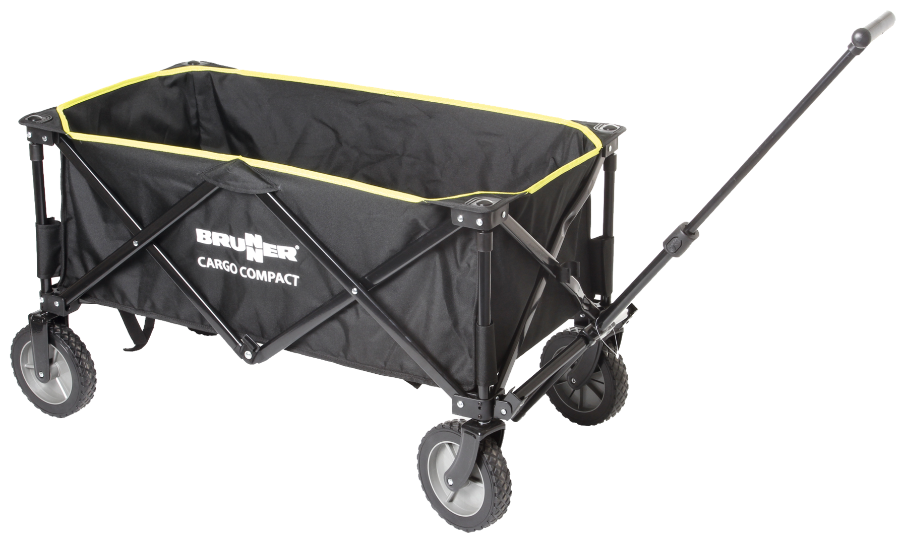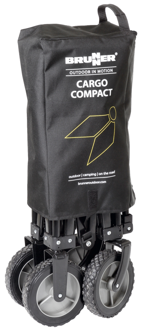 Bollerwagen CARGO COMPACT. Faltbarer Bollerwagen mit robustem, pulverlackiertem Stahlrahmen und geräumiger, mit widerstandsfähigem Polyestergewebe bezogener Transportfläche. Blitzschnell aufgebaut lässt sich der Cargo nach Gebrauch kompakt im Staukasten, im Kofferraum oder in der Garage verstauen und aufbewahren. Eine Montage ist nicht erforderlich. Eine praktische Transporttasche ist im Lieferumfang enthalten. Material Bezug: 100 % Polyester.