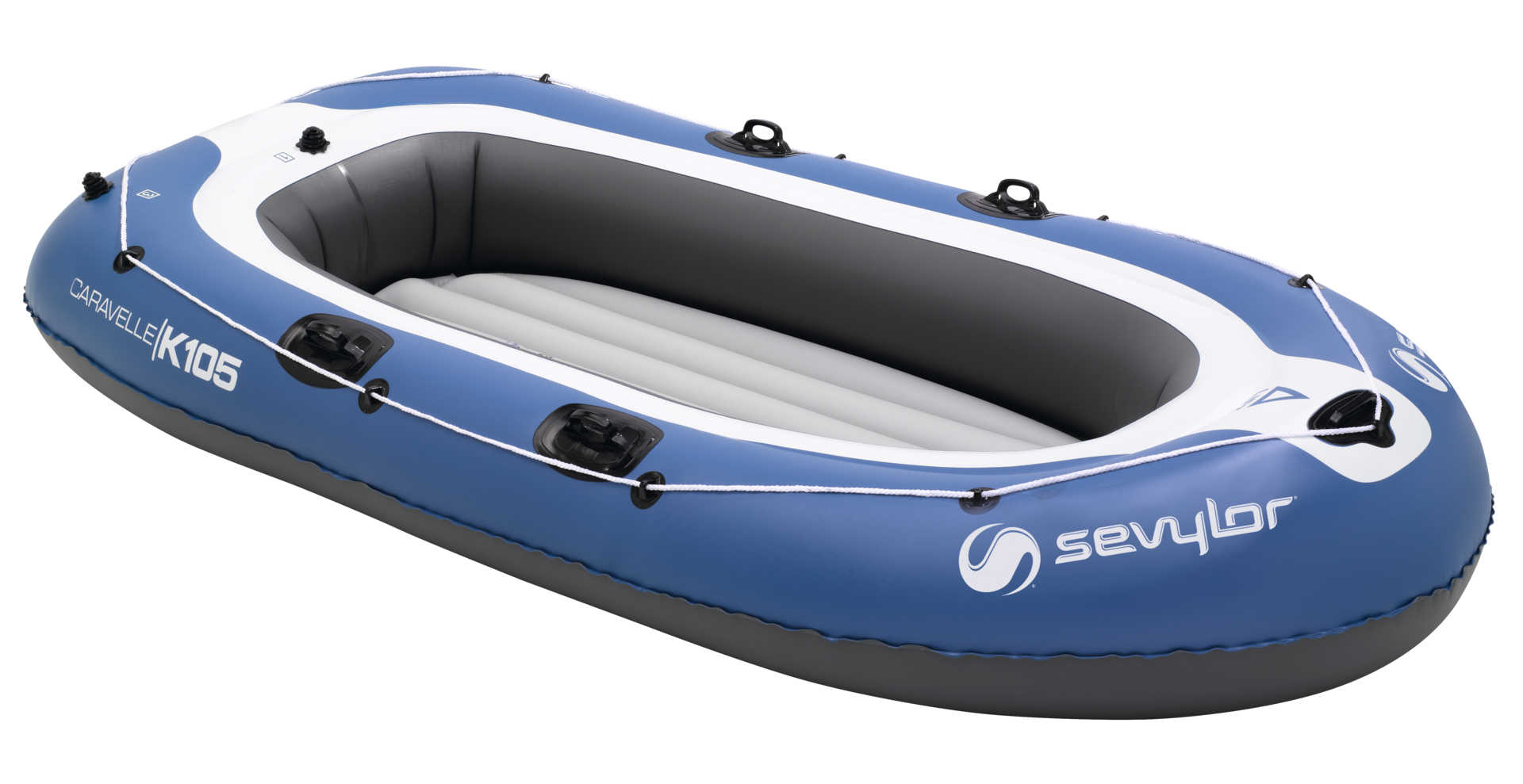 Ausstattung: Strapazierfähiges PVC, 1 Hauptkammer und 1 Sicherheitskammer, 2 Bodenkammern, integrierter Sevytest™ zur Luftdruckmessung, 2 Paar elastische Ruderdollen, hohe Besätze für die Anbringung von Außenbordmotoren SBM18 (Elektromotor) und Heckspiegel MM3 (nur K85 & K105), Rundumleine und Tragegriff, Boston-Sicherheitsventil für einfaches Aufpumpen/Entlüften.