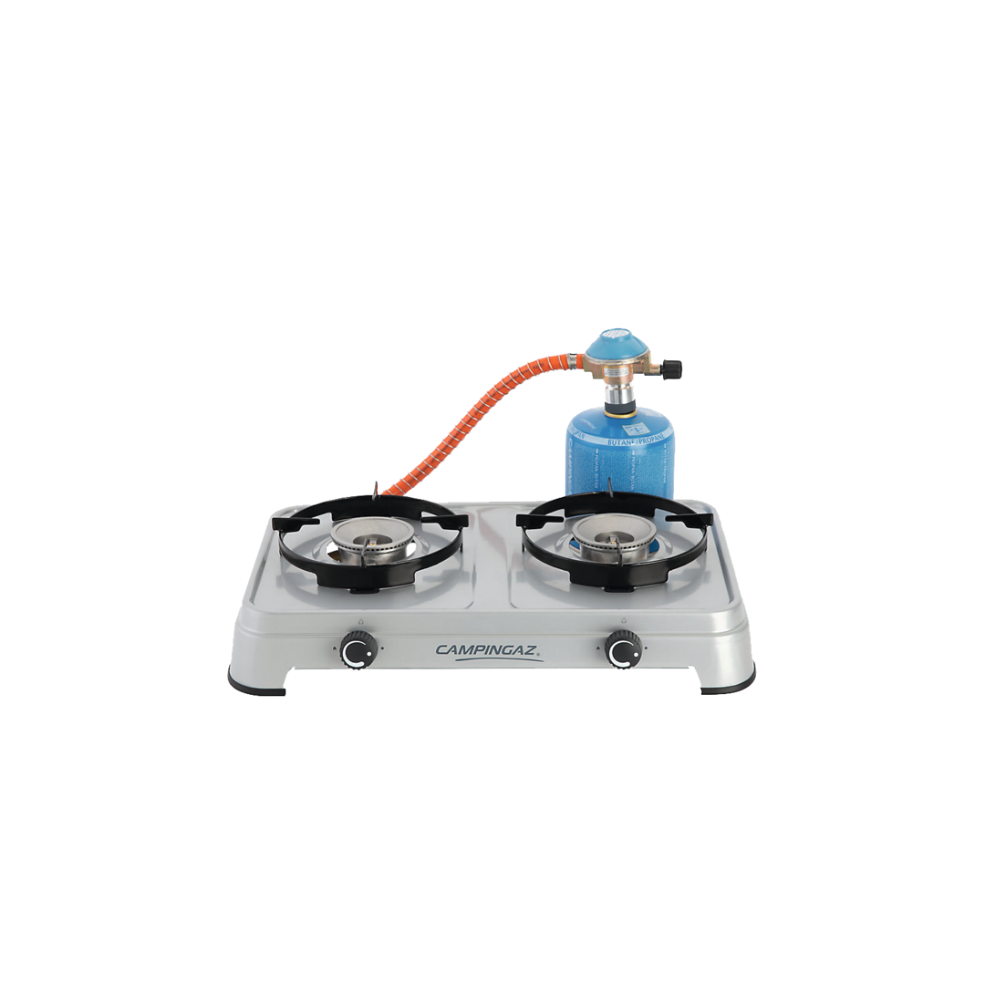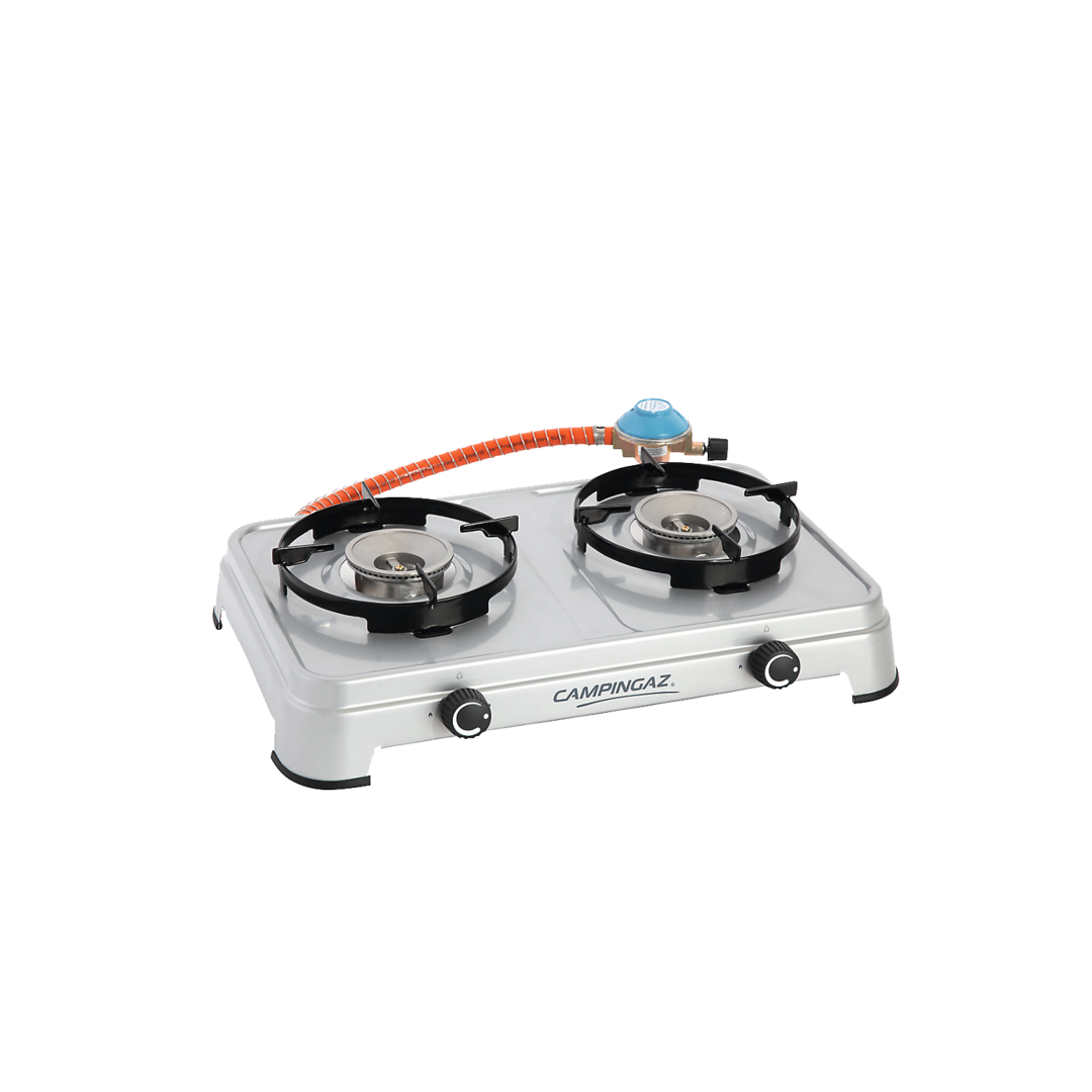 Camping Cook CV. Der Camping Cook ist ein tolles Einsteigermodell für jeden Camper. Der robuste Kocher bietet eine exzellente Leistung und Portabilität. Da der Schlauch und Regler bereits fest montiert sind, entfällt ein lästiges und umständliches Aufbauen. Es muss lediglich die Easy-Click® Plus Kartusche angeschlossen werden. Die beiden 1.800 W starken Brenner sind unabhängig voneinander regulierbar. Die beiden herausnehmbaren Topfträger sind spülmaschinengeeignet. Mit manueller Zündung. Lieferumfang inklusive Schlauch und Regler für CV-Kartusche. Leistung 2 x 1.800 W. Gasverbrauch 261 g/h.
