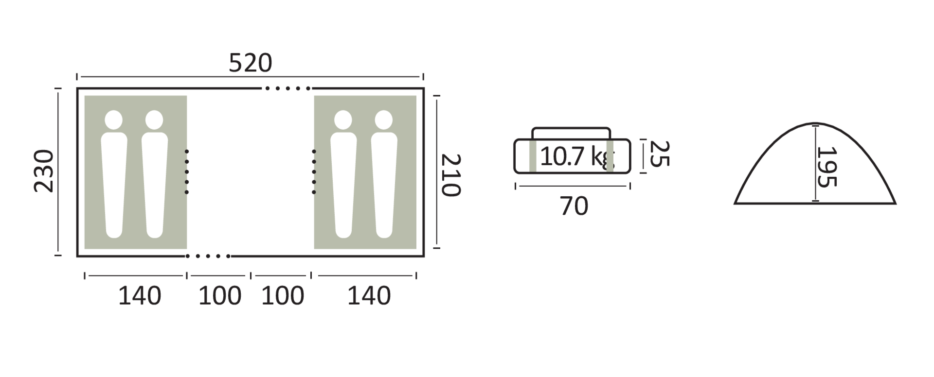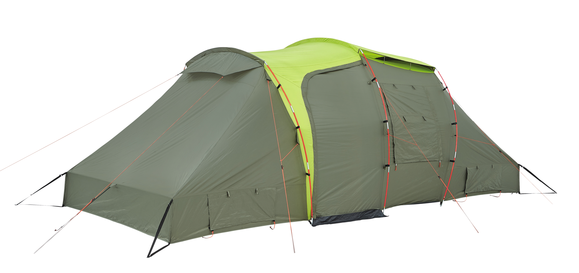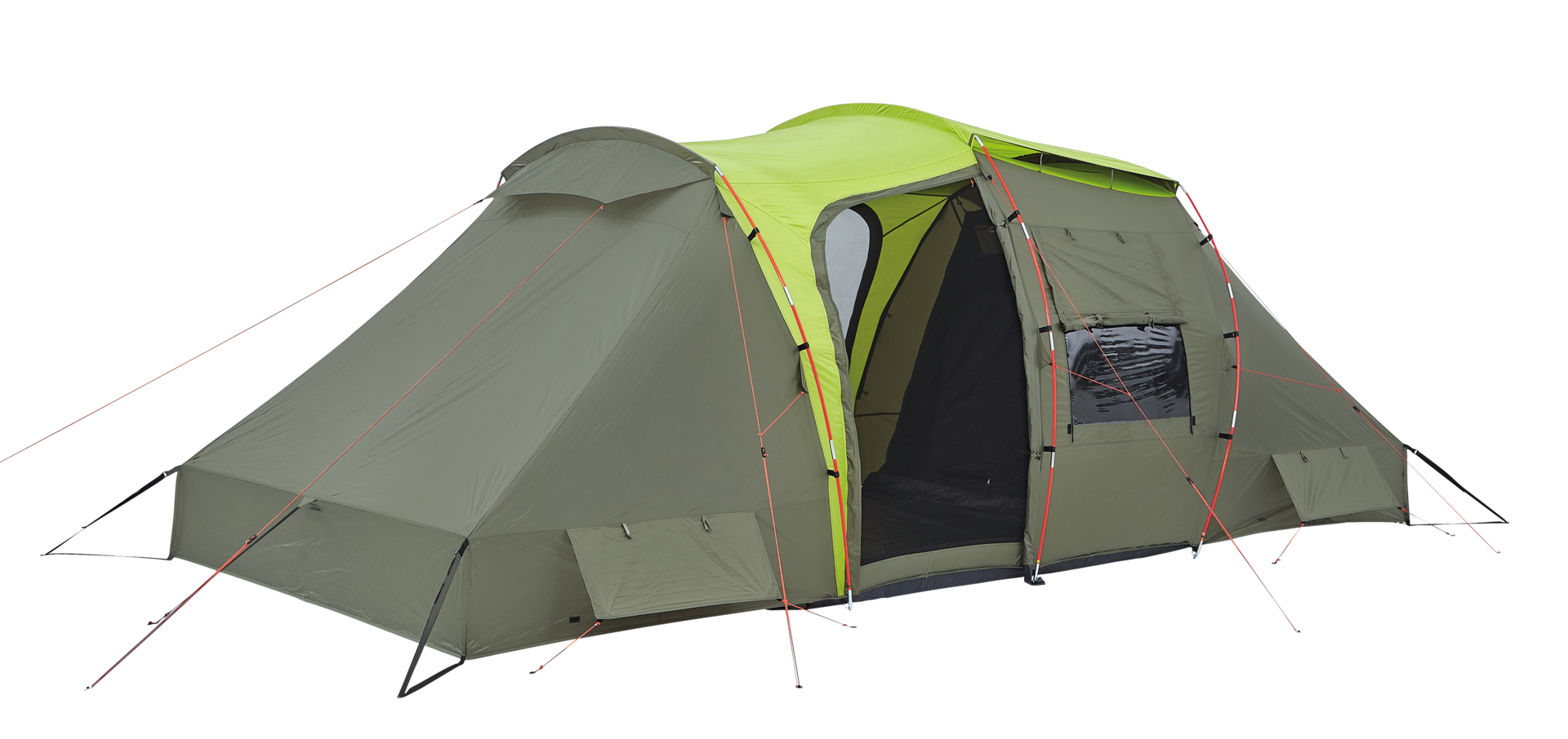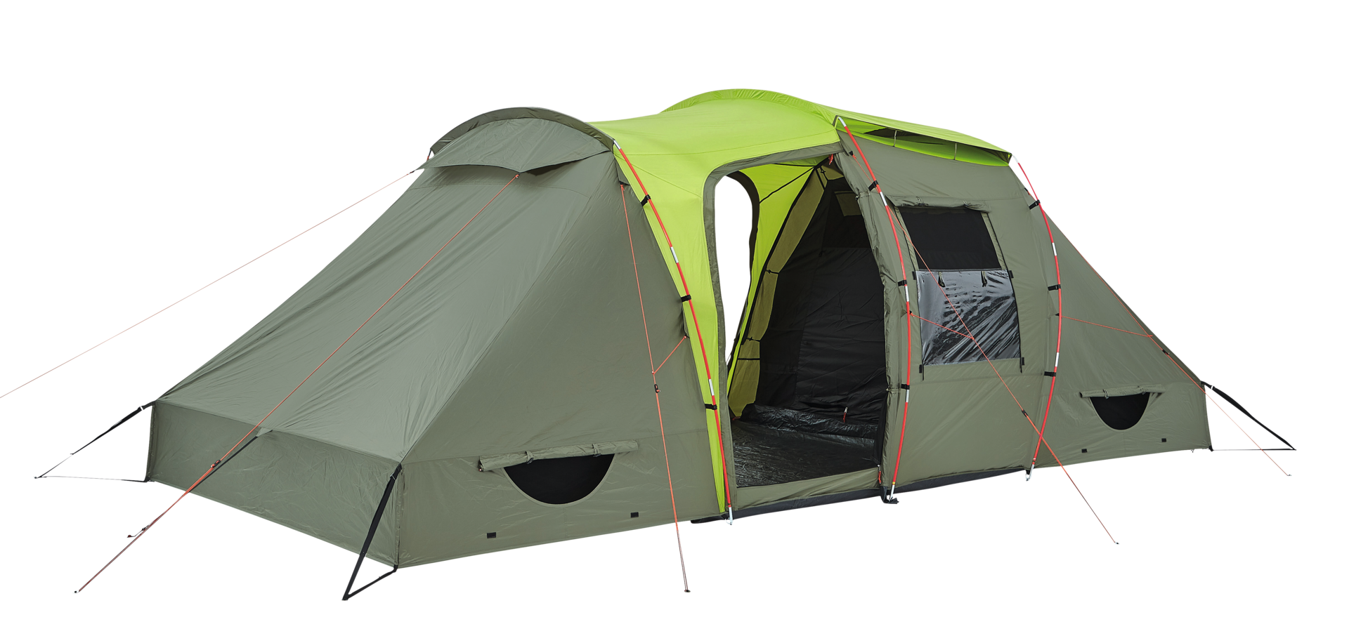 Geräumiges Familienkuppelzelt, das mit viel Platz unter der hohen Schräge für ein verbessertes Schlaferlebnis sorgt. Es verfügt über große und effektive Belüftungsöffnungen. Inklusive Tragetasche.