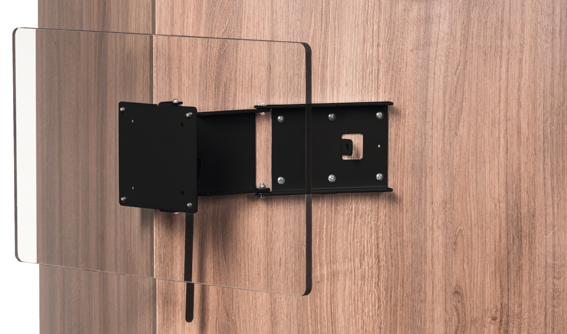 Besonders kompakte Halterung mit zwei Drehpunkten.