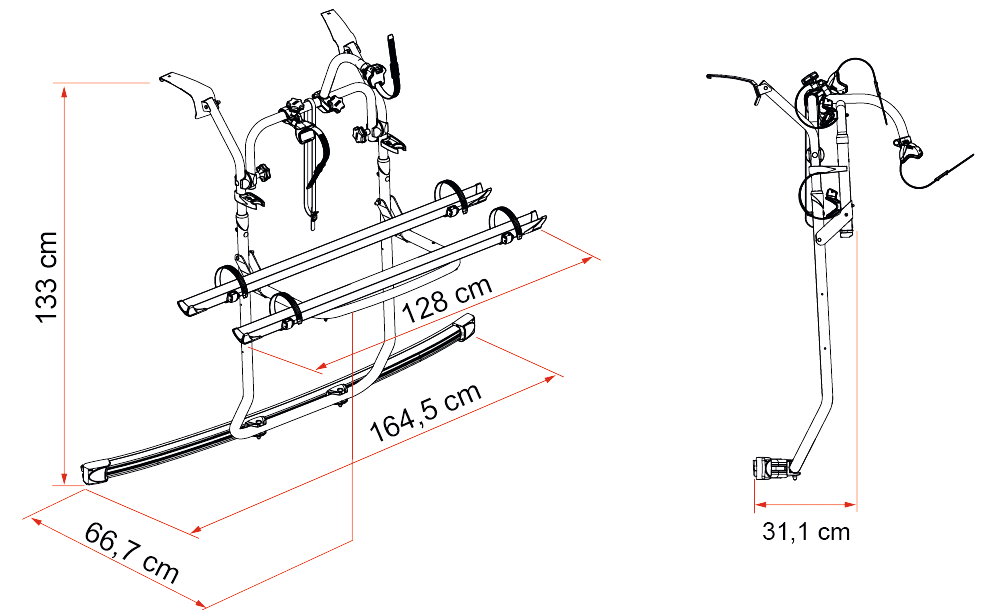 Ermöglicht den Transport von bis zu 4 Standard-Fahrrädern oder 2 E-Bikes.