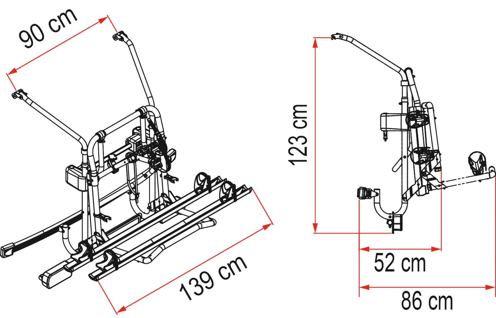 Mit Auflagebügel zum Absenken bis zu 77 cm, was das Be- und Entladen der Fahrräder vereinfacht.