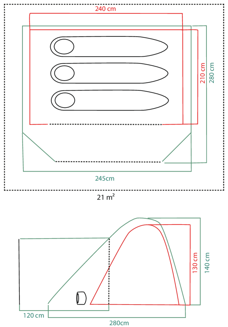 Außenzelt: Polyester, PU überzogen, feuerhemmend