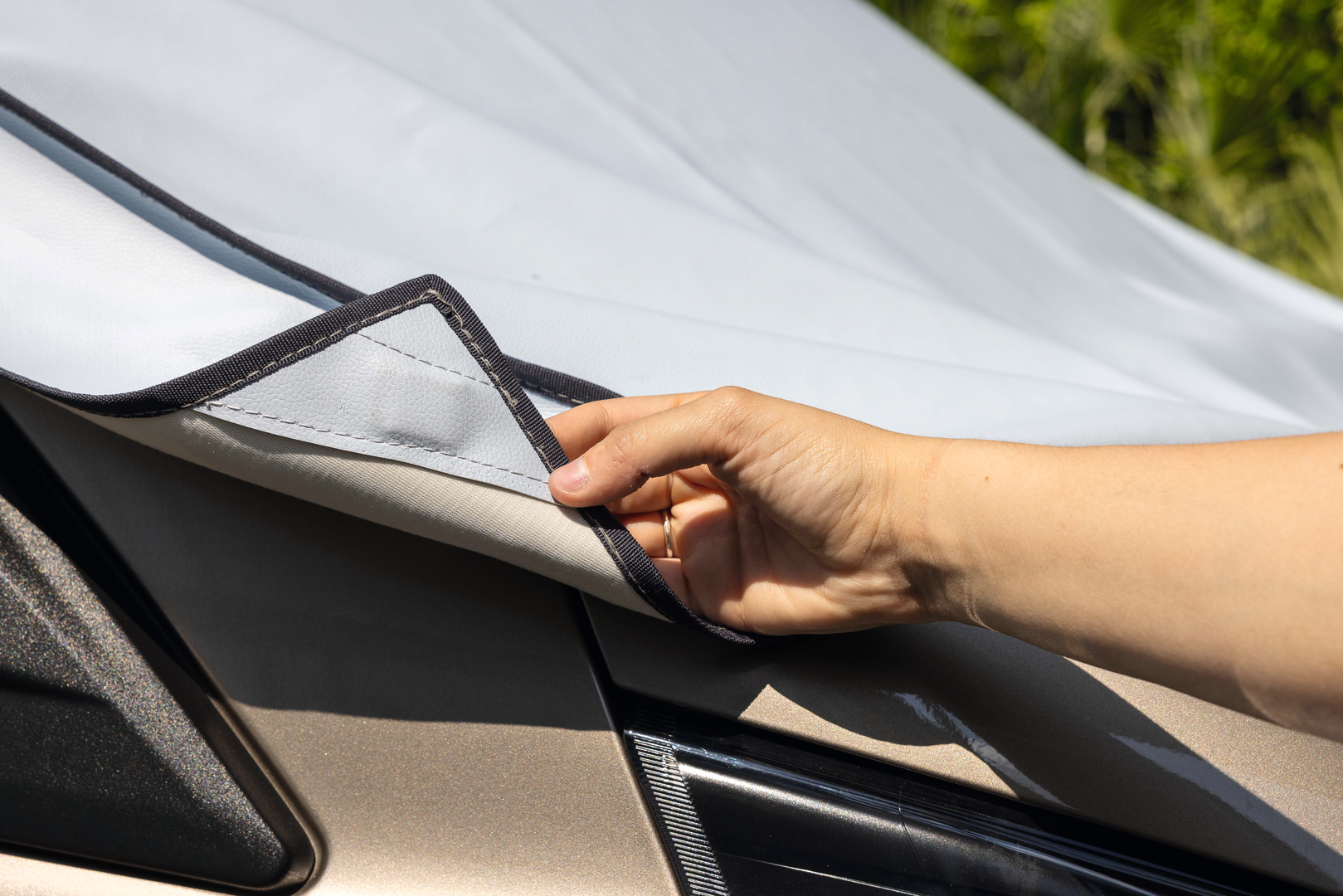 Schützt vor Sonne und UV-Strahlen, erhöht Ihre Privatsphäre und hält die Windschutzscheibe sauber.