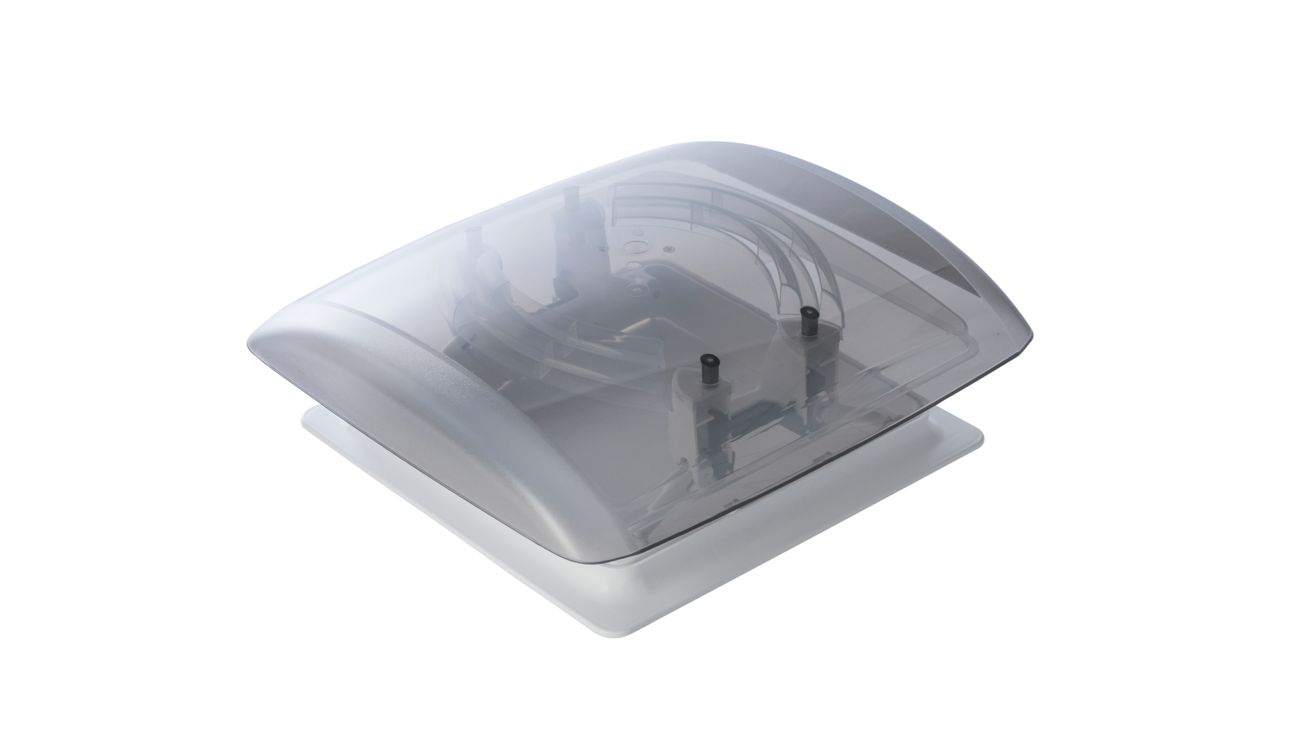 Rauchglashaube mit Teleskopaufstellern, 4-seitig aufstellbar, Hoher UV-Schutz durch getöntes Haubenmaterial, Dauerlüftung zwischen Hauben für reduzierte Kondenswasser-Bildung.