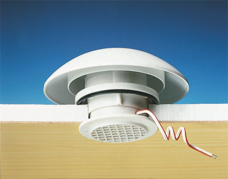 Höhe über Dach 75 mm. Leistung 7 W. Spannung 12 V. Montageausschnitt ø 95 mm. Haubengröße ø 200 mm.