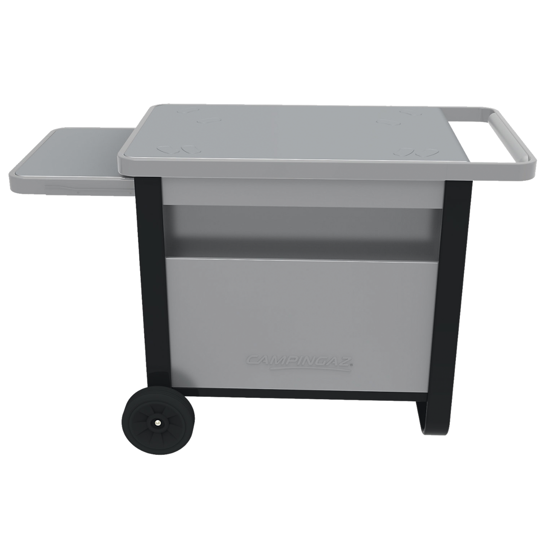 Deluxe Trolley. Wer auf dem Attitude grillen möchte, sollte auf den Deluxe Trolley nicht verzichten. In optimaler Arbeitshöhe können Sie Ihr Grillgerät perfekt in Szene setzen und der ausklappbare Seitentisch steht Ihnen als zusätzliche Arbeitsfläche zur Verfügung. Im Deluxe Trolley lässt sich eine Gasflasche von bis zu 11 kg verstauen und dank der zwei großen und robusten Räder lässt sich der Trolley einfach transportieren. Passend für alle Plancha und Attitude Grills. Grillhöhe mit Attitude 93,5 cm.