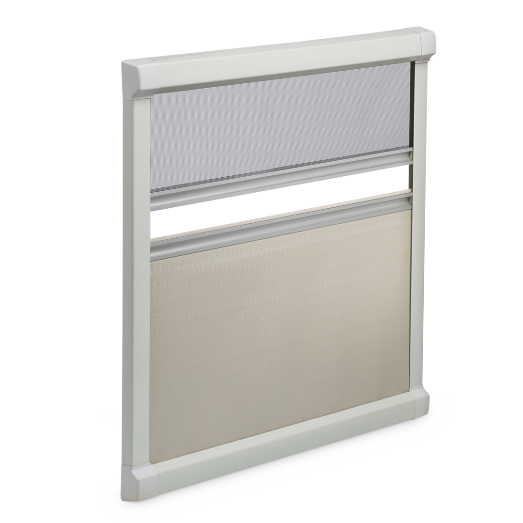 Verdunkelungsrollo und Insektenschutz sind stufenlos verstellbar. Der Insektenschutz lässt sich wahlweise oben oder unten verbauen.
