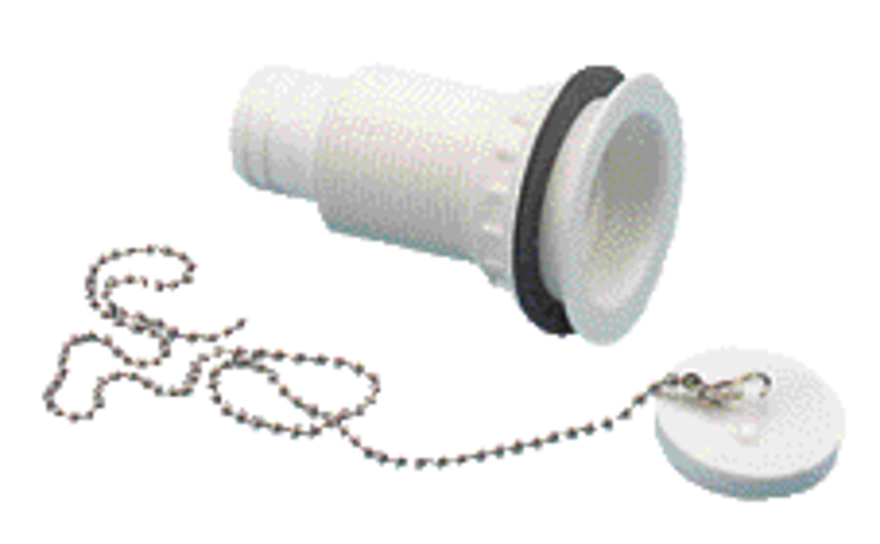 Duschwannen-Ablauf. Mit Stöpsel, Kette und Dichtung. Hergestellt aus weißem Kunststoff. Schlauchanschluss 30 mm ø. Passend für Ablauflöcher mit 45 – 50 mm ø.