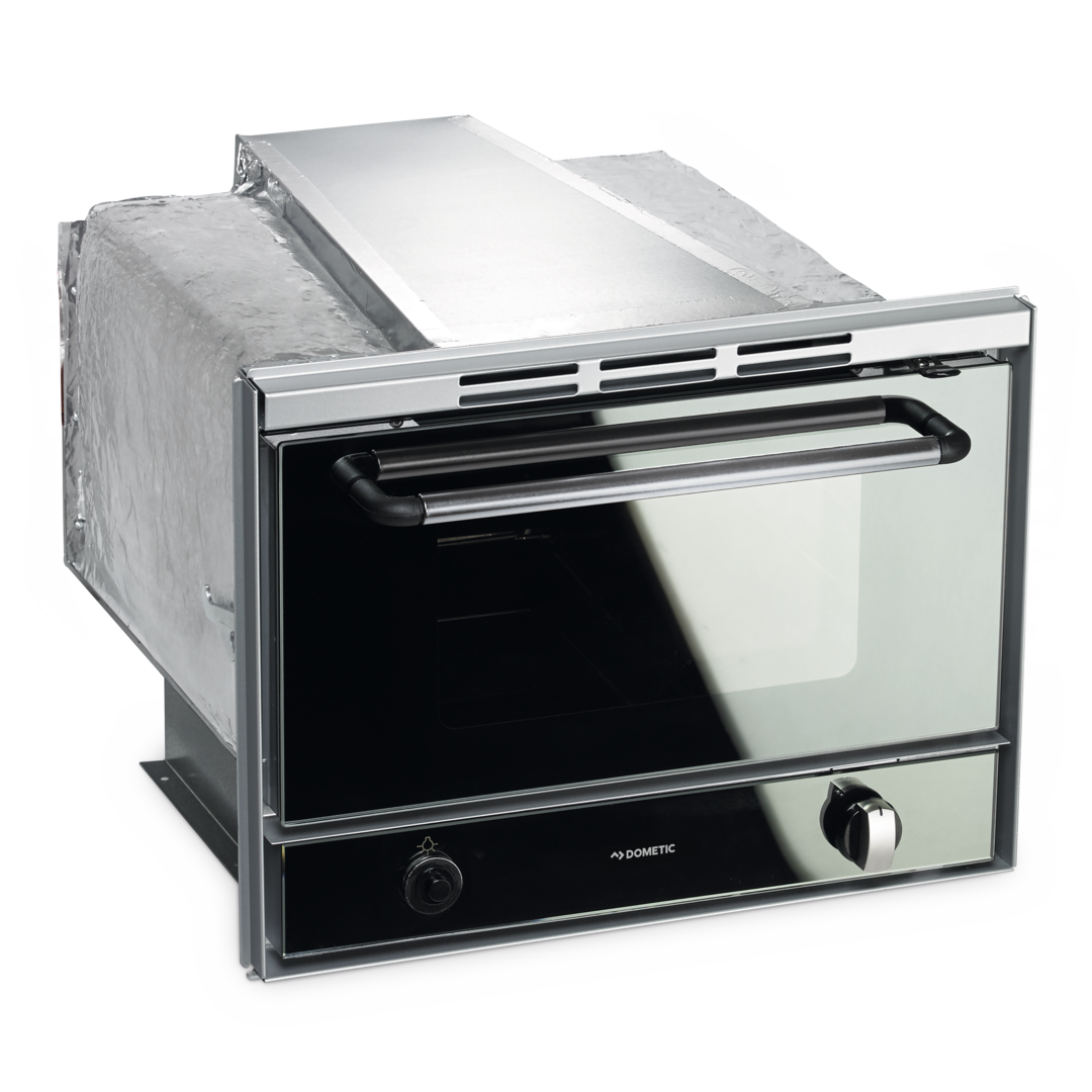 Backofen OV 1800. 18-Liter-Backofen aus rostfreiem Edelstahl. Ausstattung: Hitzeglas und Panoramascheibe, Thermostat, elektronische 12-Volt-Zündung, Innenbeleuchtung, Türanschlag unten, Backblech und Pfanne emailliert, Rost Edelstahl.