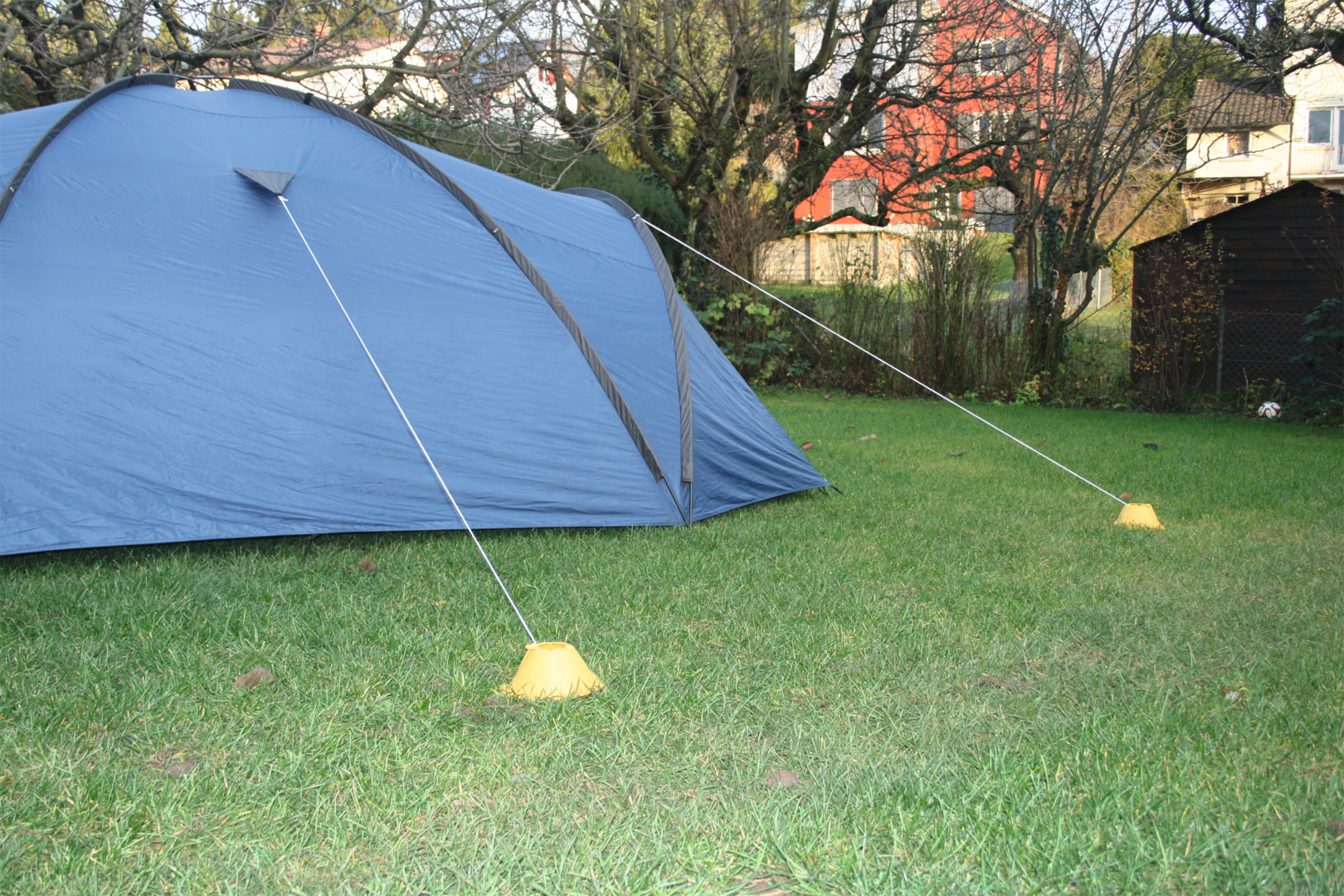 Deckt die Bodenverankerungen ab und schützt so vor gefährlichen Stolperfallen. Aus dem Boden herausragende Zeltheringe können vor allem