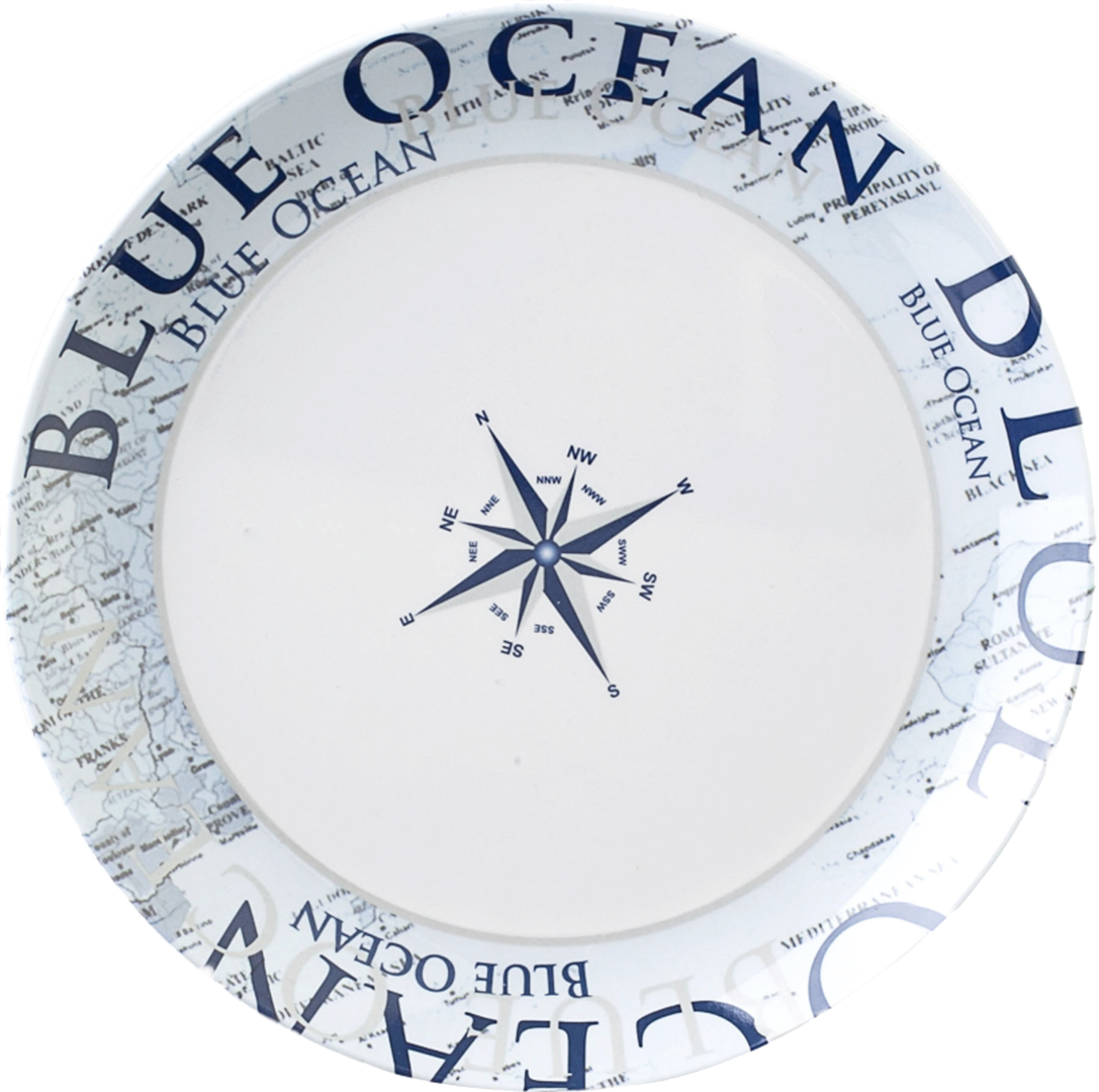 Geschirrserie BLUE OCEAN. Geschirrserie im Maritim-Look. Alle Melaminteile sind mit dem Anti-Slip-System ausgestattet, einer in den Tellerboden integrierten Anti-rutsch-Dichtung. So können Sie selbst während einer Bootsfahrt Ihr Essen genießen, außerdem wird Klappern reduziert. Geschirr ist lebensmittelecht und weitgehend spülmaschinengeeignet. Nicht mikrowellengeeignet! Essteller ø 25 cm