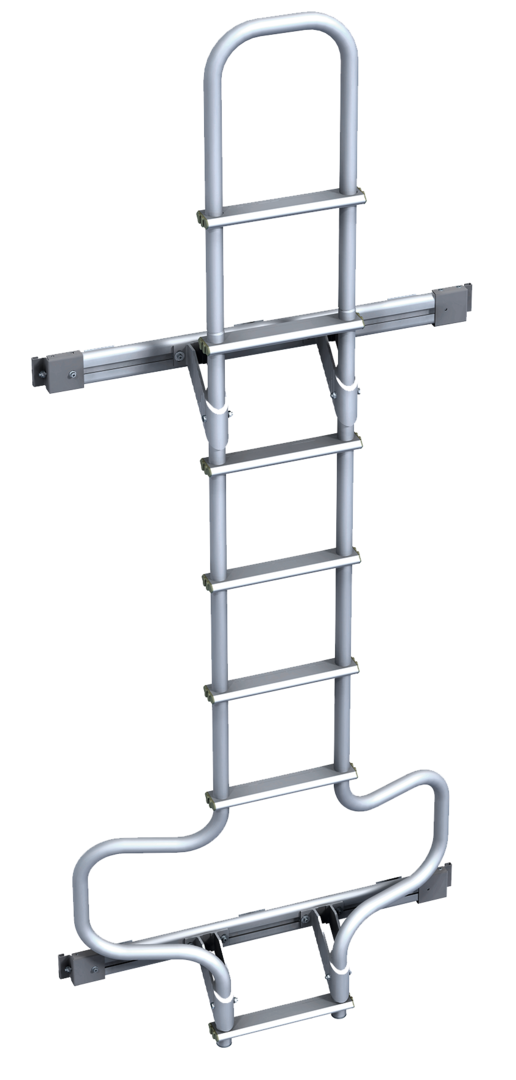 7-sprossige Leiter aus eloxiertem Aluminium, komplett vormontiert, vorgeformte Kennzeichenaussparung,