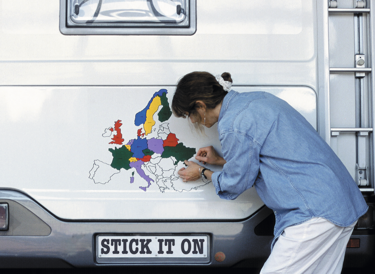 Selbstklebendes Set für Wohnwagen oder Reisemobil. Das Europa-Aufkleber-Set ist zum einen ein dekoratives Element auf den großen Aufbauflächen, zum anderen ein guter Aufhänger um mit anderen Reisenden wertvolle Insidertipps zu tauschen.