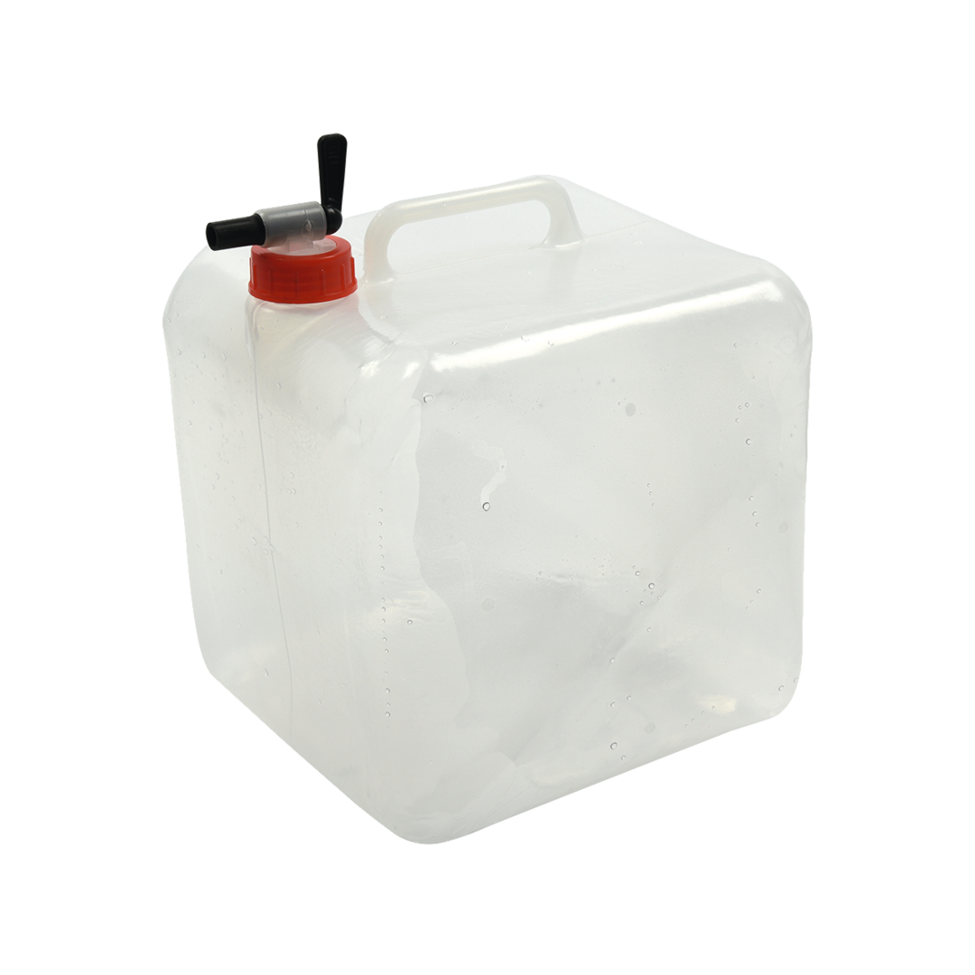 Faltkanister. Mit stabilem Griff und Auslaufhahn.