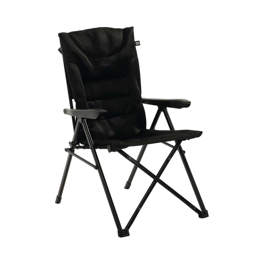Der Stuhl hat eine verstellbare Rückenlehne, einen atmungsaktiven und schnell trocknenden 2D-Mesh-Bezug (100 % Polyester) und ein kompaktes Klappdesign.