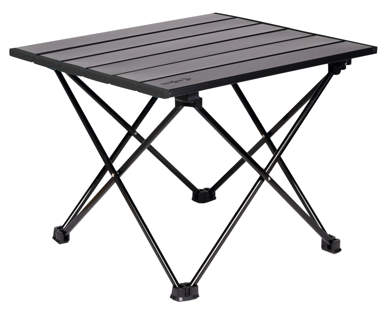 Falttisch KADRE. Kompakter Beistelltisch mit stabiler Rollplatte aus lackiertem Aluminium.