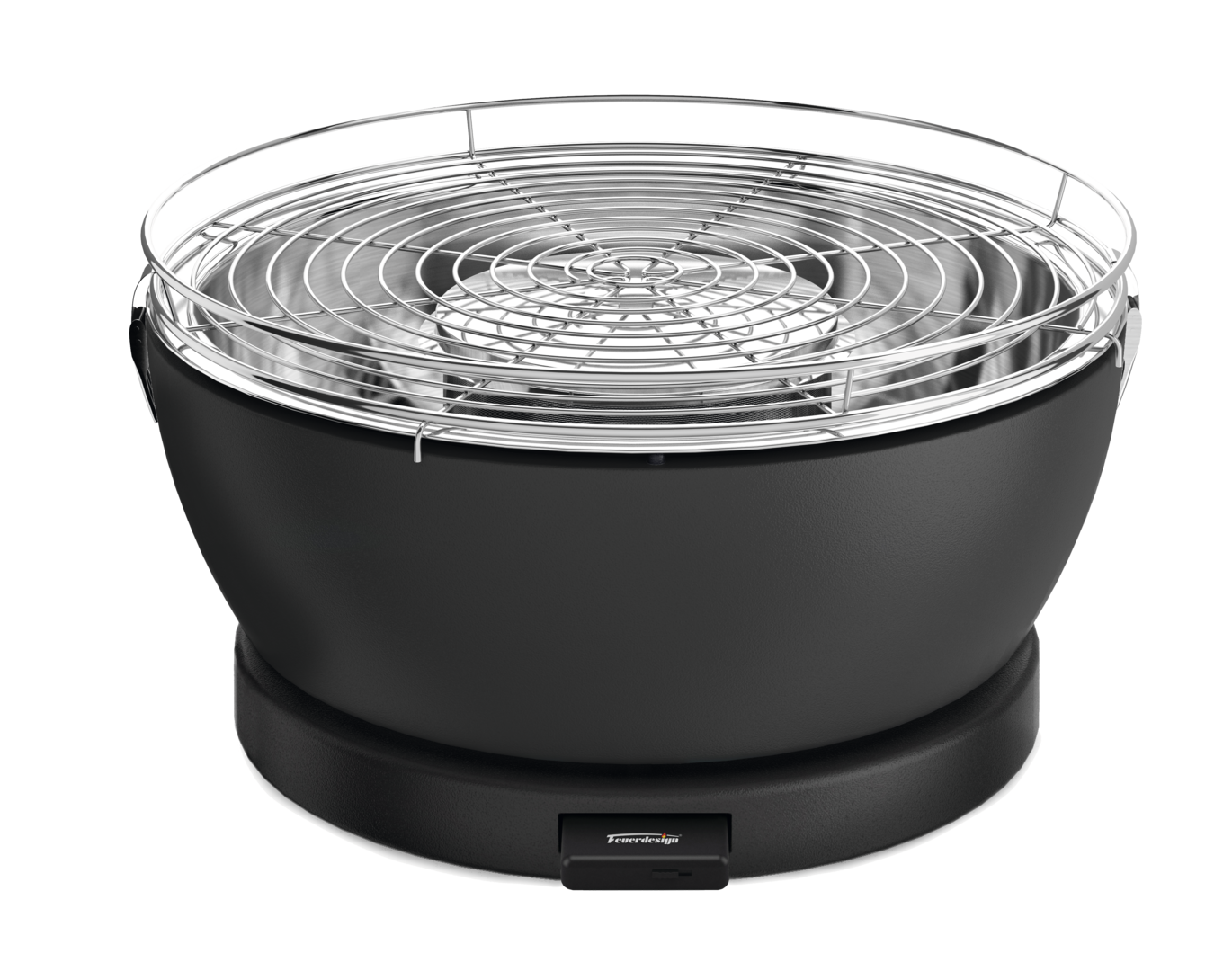 Herausnehmbares, akku-betriebenes Lüfter-Modul (wiederaufladbar über Micro-USB Kabel), 3-stufig regelbar für schnelles Anzünden und optimale Grilltemperatur – bis zu 4 h Laufzeit. Brennkorb (max. 250 g Holzkohle) mit separatem Deckel schützt die Kohle vom abtropfenden Fett.
