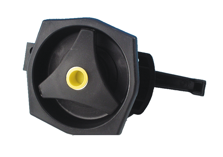 Aus schwarzem Kunststoff, rhomboide Form, mit Schrauben und Kunststoff-Flachdichtung.