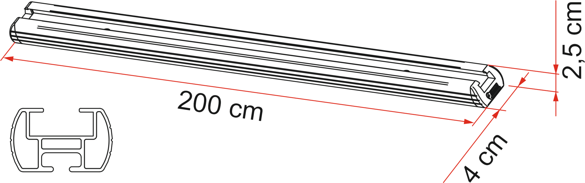 Mit 10 verschiebbaren Ösen Kit Eye, 2 roten Endkappen und Befestigungsschrauben.