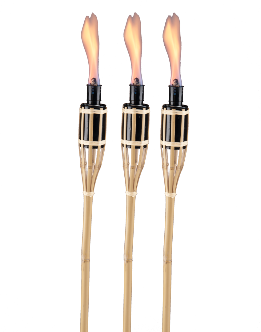 Gartenfackel. Bambusfackeln mit 60 cm Länge. Mit Metallbehälter zum Befüllen mit Lampenöl. 3er-Pack.