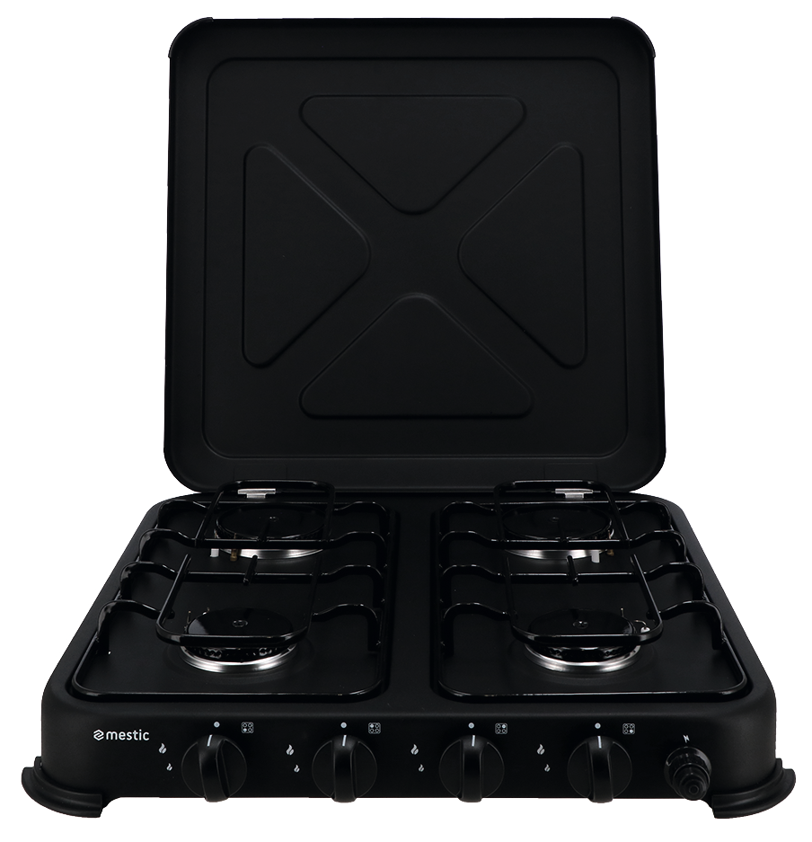 4 Brenner. Leistung 2 x 1,2 kW + 2 x 2,2 kW. Gasverbrauch 496 g/h.