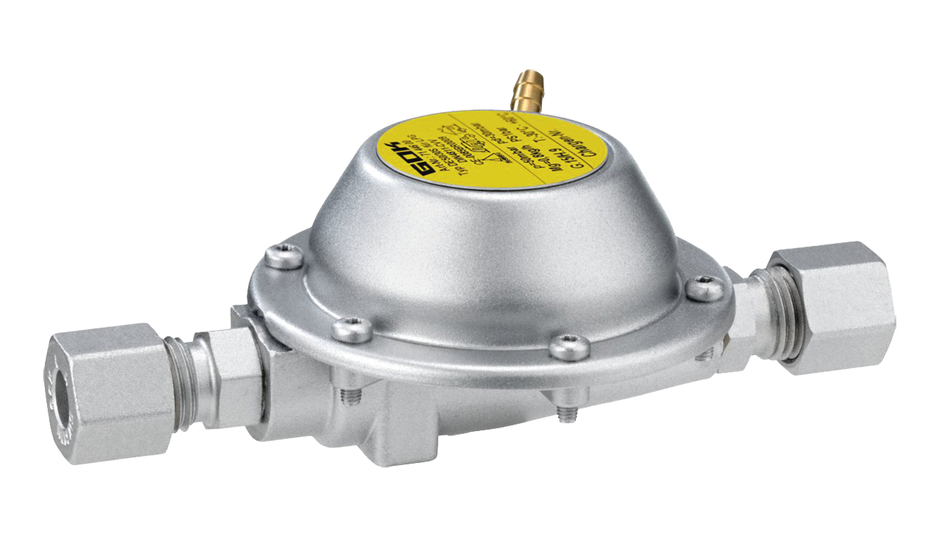 Zur sicheren und normgerechten Integration von 30 mbar Gasgeräten in 50 mbar Flüssiggasanlagen in Fahrzeugen und Booten. Inklusive 1 m Kunststoff-Entlüftungsleitung.