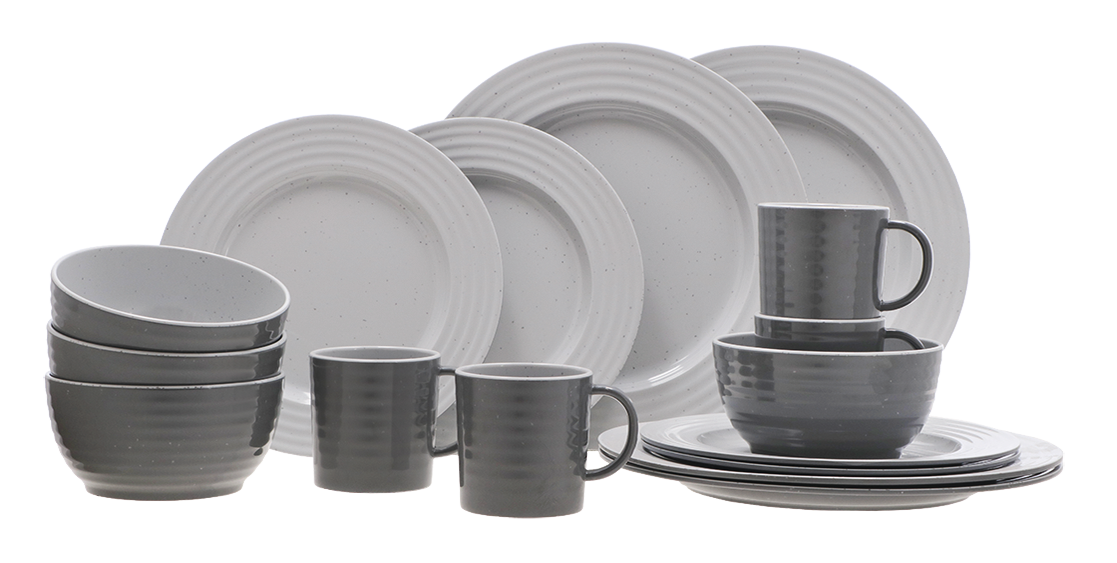 Das 16-teilige Geschirrset ROTA sieht aus wie Keramik, ist aber aus stabilem Melamin gefertigt. So ist es äußerst robust, kratzfest und spülmaschinenfest. Die Rota Tassen, Schüsseln