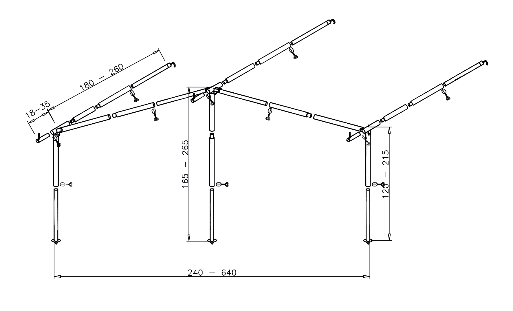 Komplett-Gestänge BUNGALOW-Stahl ø 25/22 mm.
