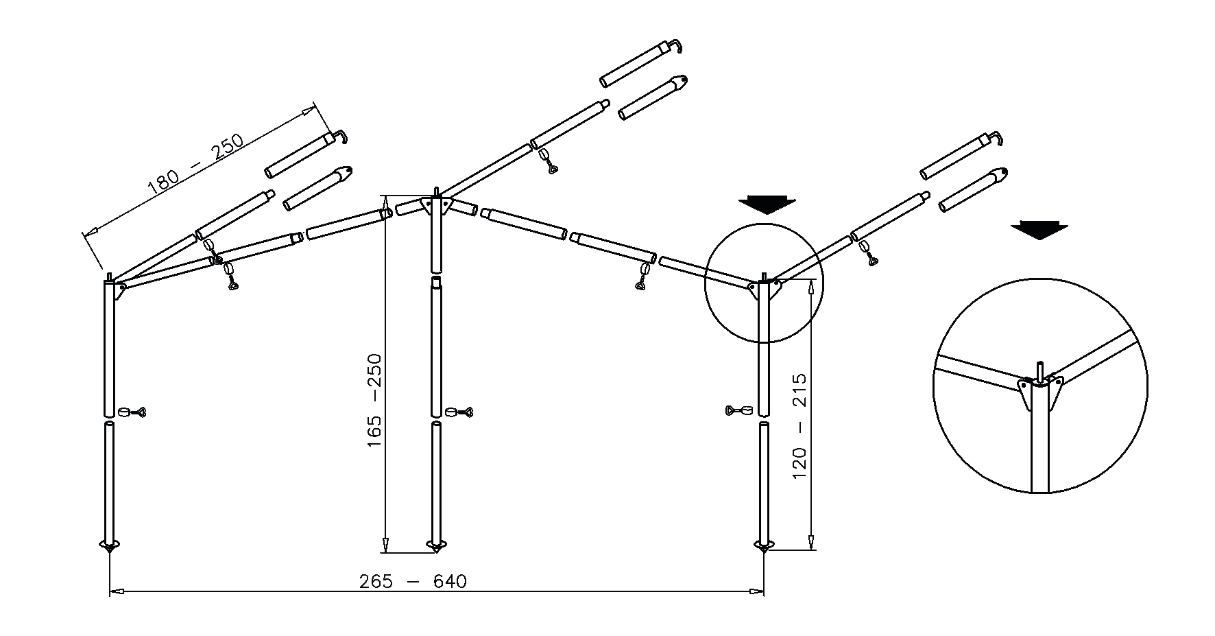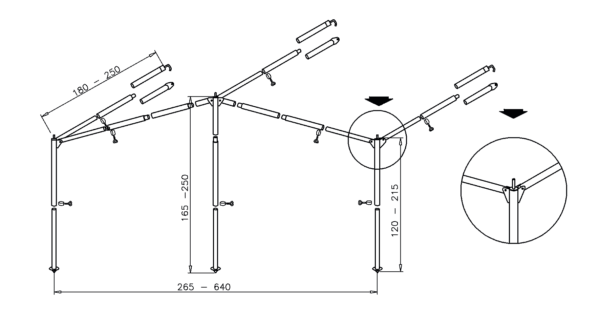 Komplettgestänge, mit 3 Wandösen.