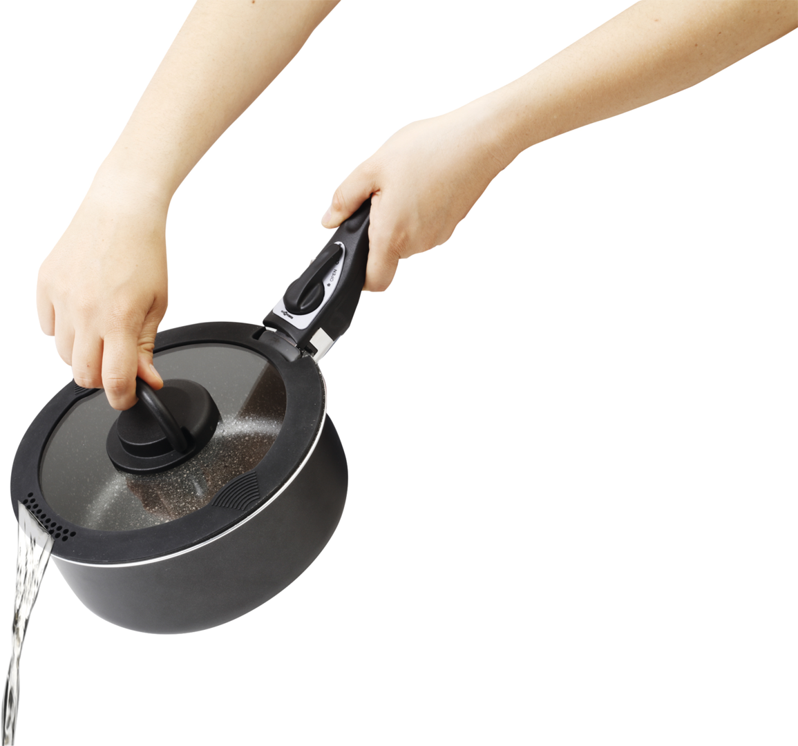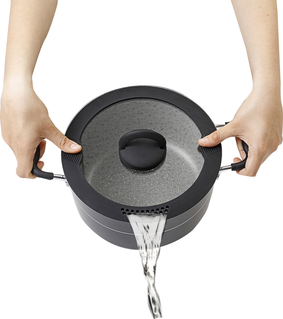 • Silikon-Kante und platzsparendem Klappgriff