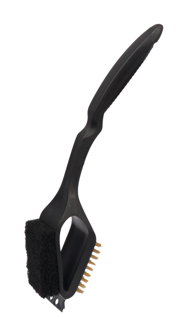 Grillreinigungsbürste 3-in1. Stahlbürste, Scheuerschwamm und Schaber in Einem. Länge ca. 38 cm.