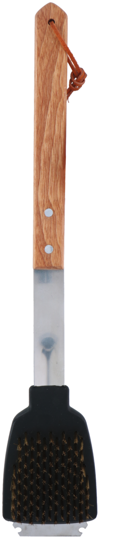 Grillreinigungsbürste Holz. Edelstahlbürste und Schaber mit Griff aus Eichenholz. Länge ca. 44 cm.