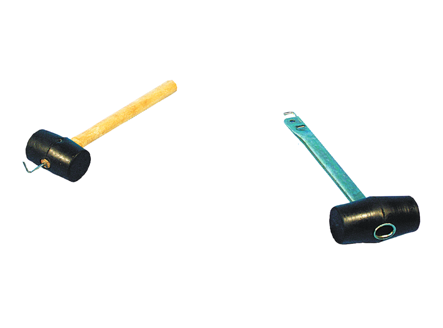 Gummihammer. Zelthammer mit Holzgriff und Heringsauszieher.