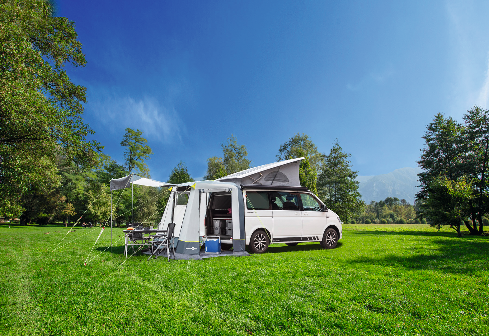 Einfache Montage, rahmenlose Konstruktion und eine sehr kompakte Stauraumgröße machen das COMET Heckklappenzelt zur perfekten Wahl für alle VW T5/T6 Besitzer. Es schafft zusätzlichen Platz im Heck, damit Sie Ihre Fahrräder aufbewahren, kochen oder schlafen können. Eine perfekte Möglichkeit, Ihrem Fahrzeug etwas mehr Bewegungsfreiheit zu verleihen. Schnelle und einfache Montage. Platzieren Sie das COMET über die Heckklappe Ihres VWs. Es wird kein Rahmen benötigt. Zwei große Eingangstüren ermöglichen eine gute Belüftung und ein angenehmes Raumklima. Mit Befestigungsmaterial und Tragetasche.