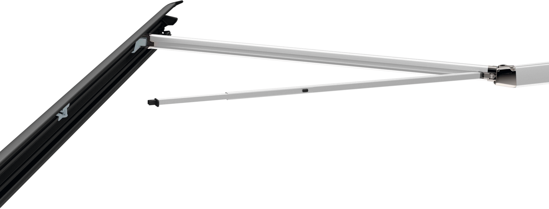 Halter für Teleskoparme: Neues optionales Zubehör für Markisen F80s (mit einer Länge von 320)* und F80L* für max. Stabilität. Dieses Zubehör verhindert das unerwünschte Schließen der Arme unter jeglichen Witterungsbedingungen**, da die Struktur auch unter hoher Beanspruchung sehr widerstandsfähig ist.