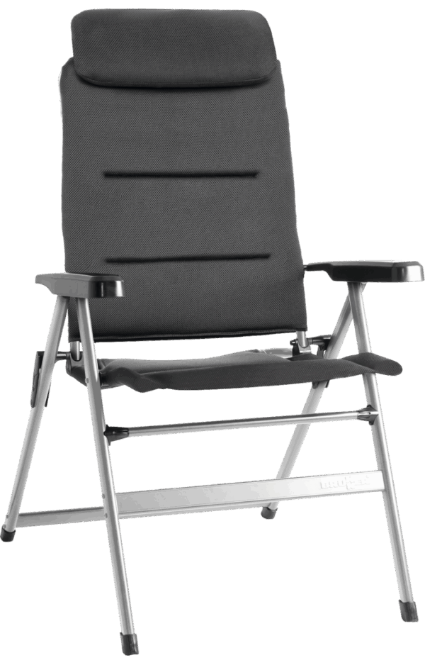 Hochwertiger Klappsessel mit höhenverstellbarer und platzsparender Kopfstütze, die sich leicht verstauen lässt. Stabiles Aluminium-Gestell und atmungsaktiver 3Durafeel-Bezug (100 % Polyester) für maximalen Halt und Komfort. Belastbarkeit 120 kg.