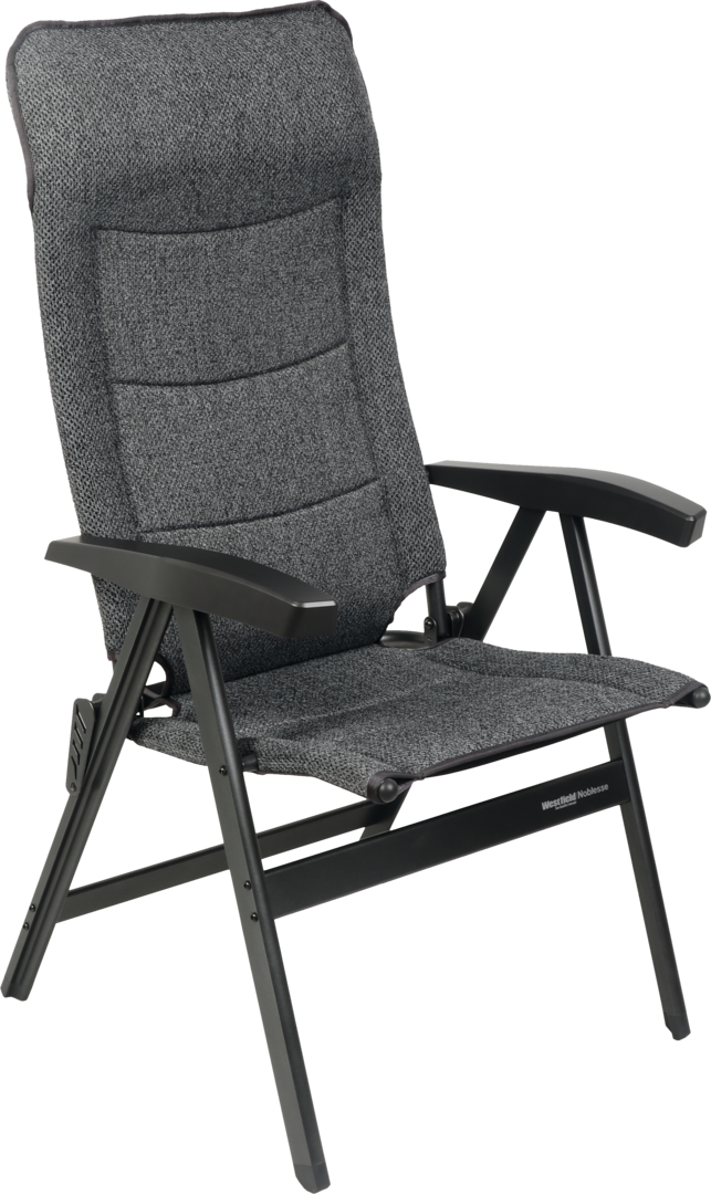 Ein in der Dicke verstellbares Kopfkissen ist in der Rückenlehne enthalten. Der Rahmen besteht aus ultraleichtem DuraLite®-Material und wird mit der bekannten SpaceBox-Technologie hergestellt, die Klappscharniere sind aus Aluminium gefertigt.