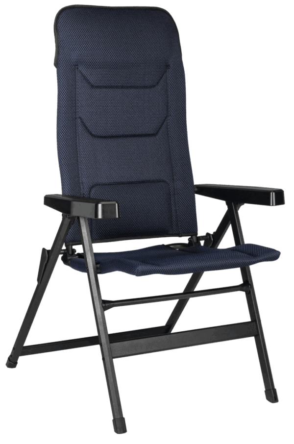 Klappsessel mit pulverlackiertem Aluminium-Gestell, atmungsaktivem FULL-3D Bezug (100 % Polyester) und metallverstärkten Armlehnen zur Rückenlehnenverstellung. Ausgesprochen stabile und platzsparende Konstruktion, gepaart mit modernem, funktionellem Design.