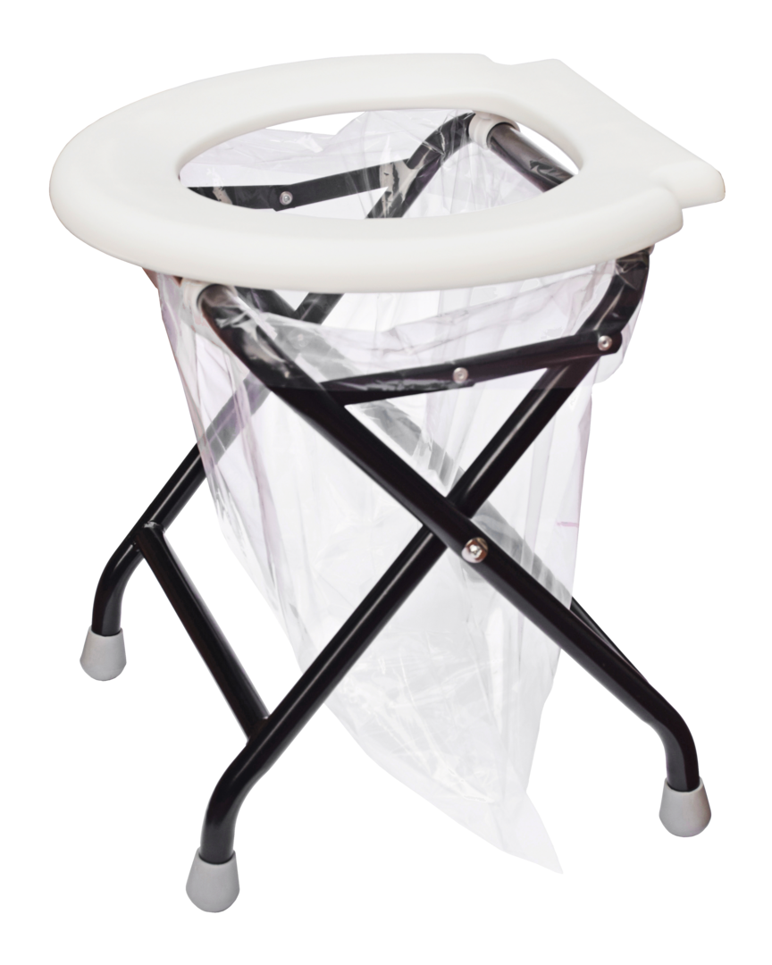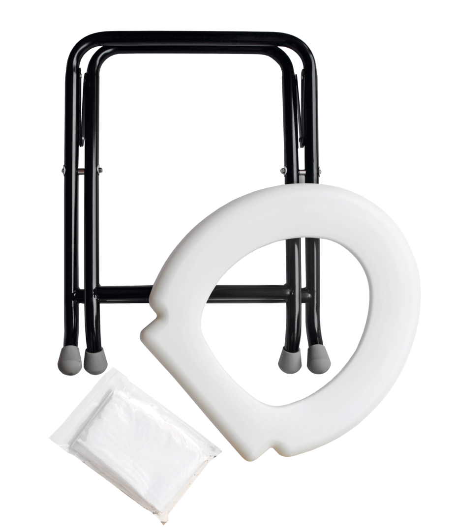 Praktische Klapptoilette für unterwegs. Sie lässt sich schnell und mühelos verstauen und ist im Handumdrehen einsatzbereit.
