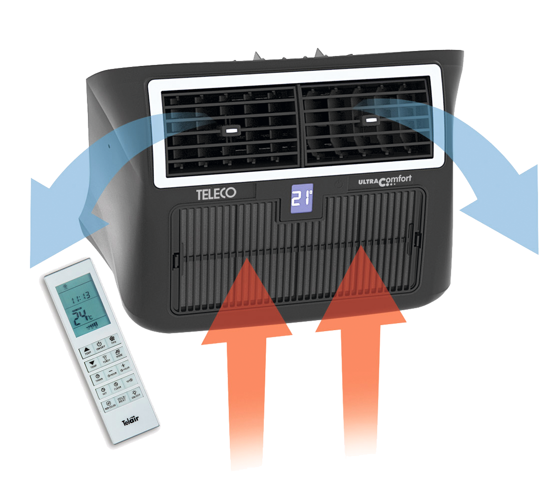 Die Klimaanlage ULTRA COMFORT 6000 ist so konzipiert, dass sie sich über Wi-Fi mit dem bordeigenen Router verbindet. So kann die Klimaanlage auch direkt vom Strand aus gesteuert werden. Bei der Rückkehr ins Mobil ist eine kühle, angenehme Umgebung gegeben, ohne durch permanenten Einsatz unnötig Energie zu verschwenden.