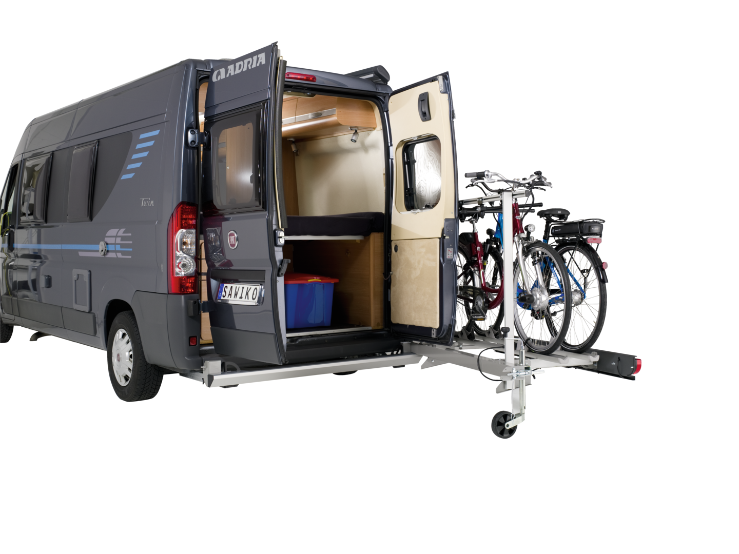 Zum kompletten Öffnen der Hecktüren oder Heckklappen lässt sich der Kastenwagenträger mühelos komplett zur Seite schwenken.