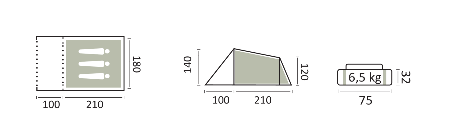 Innenzelt: Polyester 68 D 190 T PU-beschichtet